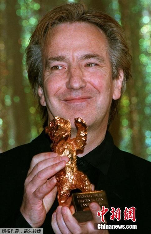 圖為1996年2月26日,英國(guó)男演員阿倫·瑞克曼(Alan Rickman)憑借《理智與情感》獲得第46屆柏林電影節(jié)金熊獎(jiǎng)。