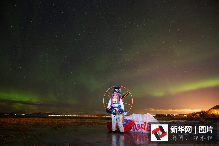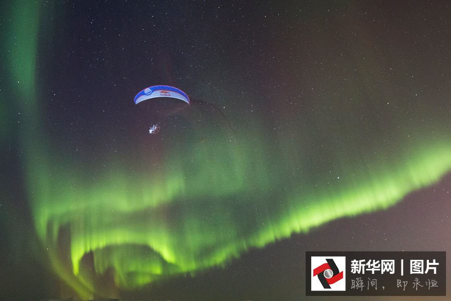 滑翔傘運動員Horacio Llorens在挪威終于完成了一生的夙愿“與極光跳舞”,畫面非常震撼。圖片來源:視覺中國