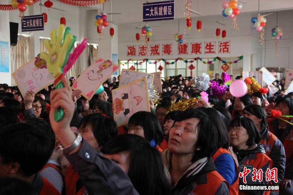 22日,適逢元宵佳節(jié),一場由民警和戒毒學(xué)員共同演繹的聯(lián)歡會在陜西省女強(qiáng)制隔離戒毒所舉行,通過歌舞、相聲、二人轉(zhuǎn)、小品等表演形式,鼓勵戒毒人員在新的一年,繼續(xù)增強(qiáng)戒毒意愿和決心,早日戒除毒癮回歸社會。圖為民警表演歌伴舞。 張一辰 攝