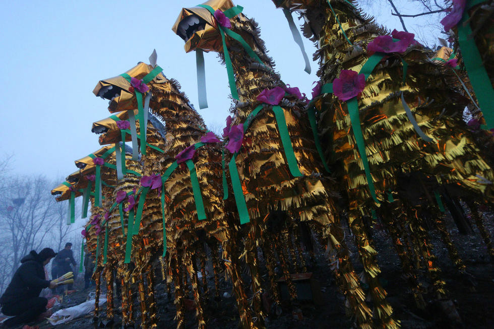 2016年2月23日凌晨,山東省濱州市惠民縣小霹靂莊,宋代古冢牛保冢上一年一度的正月十六祭祀活動(dòng)正式開始,方圓百里萬(wàn)余百姓陸陸續(xù)續(xù)趕來(lái)祭祀,以求風(fēng)調(diào)雨順,家和事興。多種祭祀用紙馬先后被抬上祭壇引燃,化作火龍直沖云天,數(shù)量足有數(shù)千匹之多,場(chǎng)面壯觀且奇異,親臨現(xiàn)場(chǎng)宛若置身神鬼大片,令人印象深刻。
