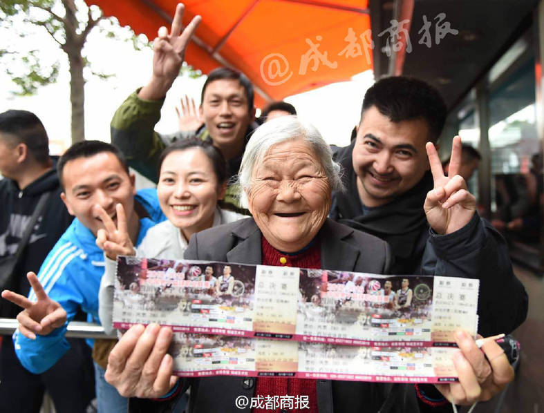 可以說,為了買到一張球票,真是要把吃奶的力氣都拿出來。然而,在一票難求的情況下,當一位80歲高齡的老太替兒子來排隊買票時,現(xiàn)場幾百名球迷卻主動讓老人插隊,老人最終買到球票。 圖片來源:成都商報