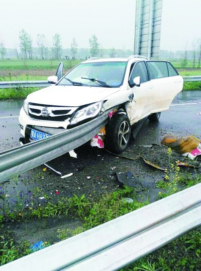 一輛越野車撞上互通分流處的護欄鋼板,猛烈的撞擊使一根護欄鋼板戳穿車頭,插在駕駛室里的女司機王某的左大腿及腹部,令其無法動彈,王某忍痛撥打電話報警求救。