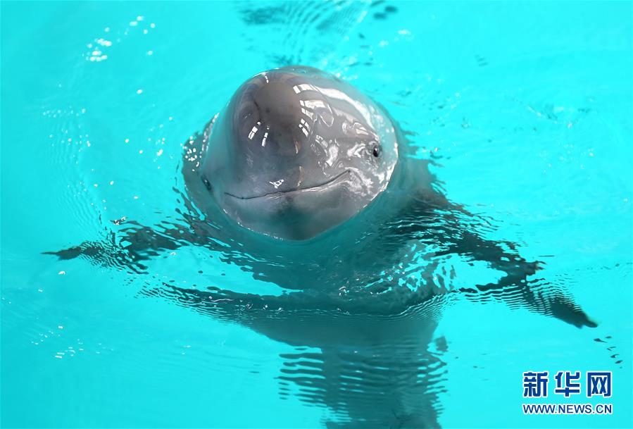 5月10日,武漢白鱀豚館一只人工飼養(yǎng)的江豚面對鏡頭“微笑”。近日,中科院水生所武漢白鱀豚館的一只江豚經(jīng)過十余個月的“孕育”即將臨盆。這只江豚名叫“F9”,年齡約7歲,是2010從鄱陽湖搬家到這里的。長江江豚是一種古老的水生哺乳動物,在地球生活已有2500萬年歷史,被稱為長江生態(tài)的“活化石”,僅分布于長江中下游干流及與之相連的鄱陽湖、洞庭湖兩個大型通江湖泊。據(jù)科考研究,長江流域江豚數(shù)量已不足千頭,比國寶大熊貓還要少。目前江豚保護主要以遷地保護和人工飼養(yǎng)為主,其中人工飼養(yǎng)保護地在中科院水生所武漢白鱀豚館,這里目前共飼養(yǎng)著6頭長江江豚。 新華社記者程敏 攝