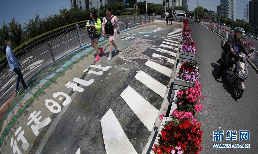 5月16日,行人從上海漕河涇開發(fā)區(qū)一處3D斑馬線上走過。近日,上海漕河涇開發(fā)區(qū)的一條人行橫道線變身一幅3D效果圖畫,還“植入”了宣傳行走禮讓的標(biāo)語(yǔ),呼吁文明出行。 新華社記者 凡軍 攝 圖片來源:新華網(wǎng)