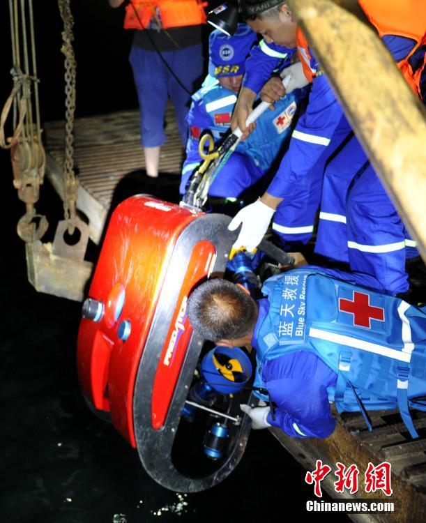 6月6日,四川廣元沉船事故救援現(xiàn)場,參與救援的水下機(jī)器人先后兩次下水,并通過攝像頭在翻沉的“雙龍”號(hào)船內(nèi)發(fā)現(xiàn)有遇難者以及一些漂浮物品。圖為救援人員將水下機(jī)器人抬放入水。中新社記者 劉忠俊 攝