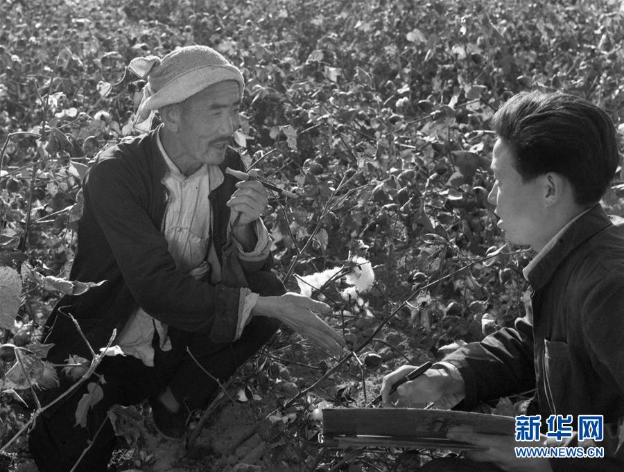 圖為植棉能手吳吉昌(左)在棉田里介紹他的植棉經(jīng)驗(yàn)。一張照片,定格一個(gè)瞬間;一組群像,打開(kāi)一部史冊(cè)。中國(guó)共產(chǎn)黨成立95周年之際,我們選取新華社中國(guó)照片檔案館珍藏的資料照片,展現(xiàn)中國(guó)共產(chǎn)黨人特有的“紅色氣質(zhì)”。新華社發(fā)