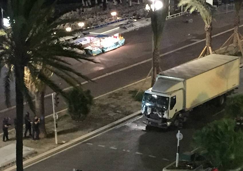 當(dāng)時(shí)人們正在當(dāng)?shù)乜礋熁鸨硌荩稚隙际怯稳?,一輛貨車以每小時(shí)60-70公里的速度沖向人群。據(jù)現(xiàn)場(chǎng)目擊者稱,期間還聽見數(shù)聲槍聲。