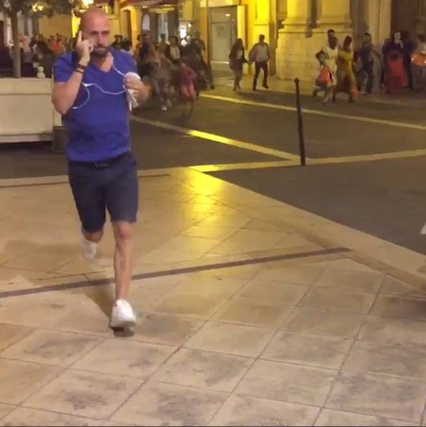 尼斯市市長埃斯特羅斯說,“一個(gè)大貨車司機(jī)似乎殺死了數(shù)十人?!?他呼吁當(dāng)?shù)鼐用窳粼诩抑校灰獬觥?還有報(bào)道說,警察同大貨車?yán)锏娜讼嗷ド鋼?。但是這一消息沒有得到確認(rèn)。 社交媒體上發(fā)表的視頻顯示,事發(fā)后人們?cè)诮稚象@惶地奔跑。 當(dāng)?shù)貓?bào)紙的一名記者說,他在現(xiàn)場(chǎng)看到很多血跡,很多人受傷。