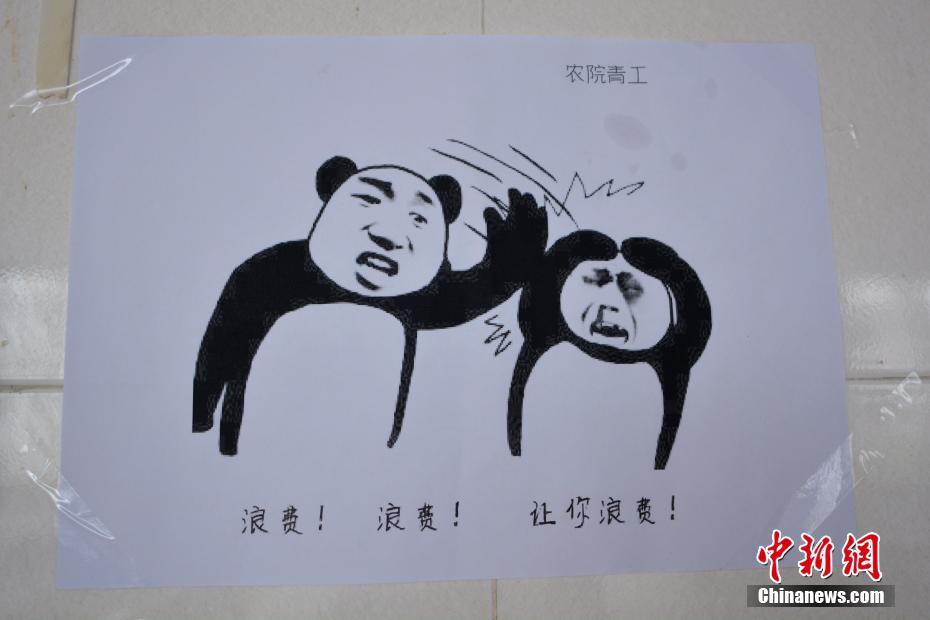 近日,四川農(nóng)業(yè)大學(xué)食堂的“魔性”表情包告示牌在網(wǎng)絡(luò)走紅。告示牌上除了夸張的“魔性”圖案,還配有“吃完盤中餐,不做剩男剩女”、“敢在食堂撒野”、“默默吃著飯”等文字。四川農(nóng)業(yè)大學(xué)工作人員介紹,這組魔性表情包告示牌由該校農(nóng)學(xué)院同學(xué)們自發(fā)創(chuàng)作張貼,目的是為了讓同學(xué)們不要浪費糧食,注意排隊。 四川農(nóng)業(yè)大學(xué)供