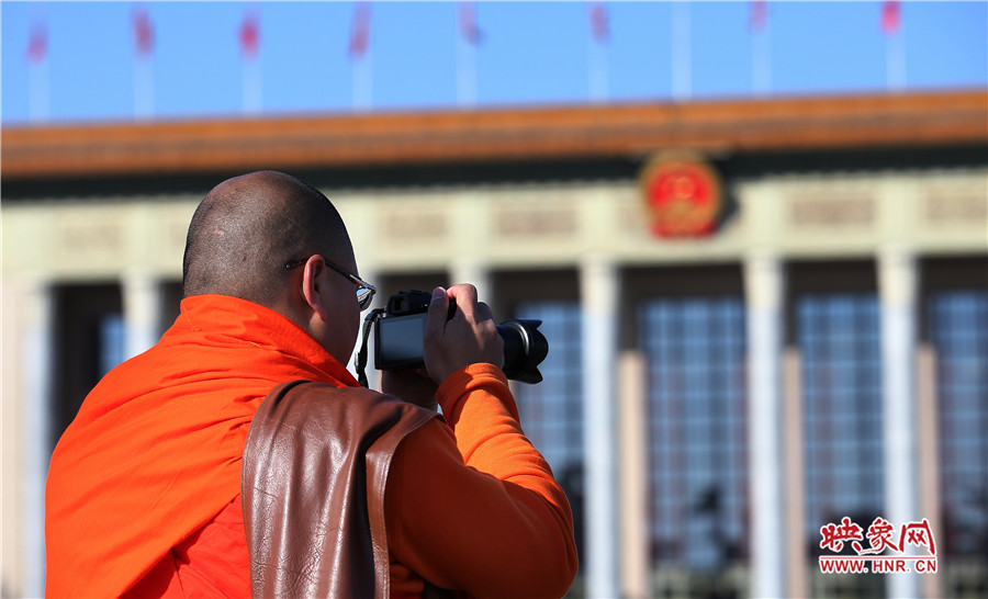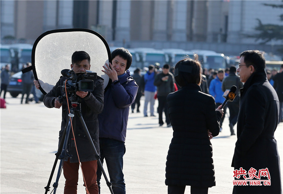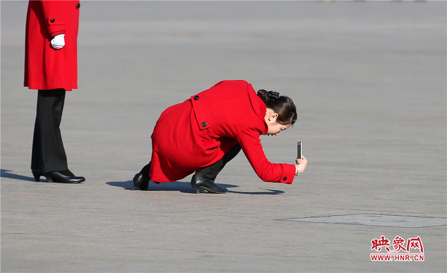 映象網(wǎng)北京訊(大象融媒飛象隊(duì)記者 段晉哲 文/圖)2017年3月5日,第十二屆全國(guó)人大五次會(huì)議在人民大會(huì)堂召開(kāi)。場(chǎng)外的記者、安保人員、服務(wù)人員、保潔人員等都用自己的方式參與其中。他們?cè)谔彀查T(mén)廣場(chǎng)上和人民大會(huì)堂前,都留下了自己最美麗的身影。