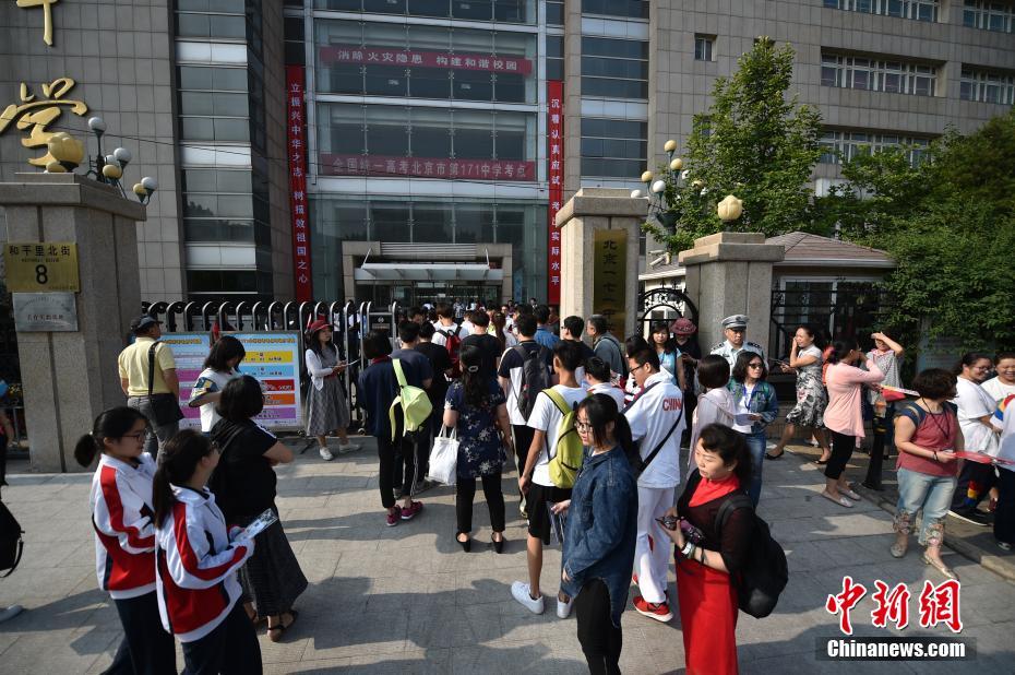 6月7日,2017年高考大幕正式拉開,全國將有940萬考生參加考試。今年可謂是高考?xì)v史上的特殊年份,一方面,今年是高考恢復(fù)40周年,另一方面,今年也被稱為“新高考元年”,高考綜合改革試點(diǎn)地區(qū)的考生將迎來首次“新高考”。圖為北京市171中學(xué)考點(diǎn)的考生陸續(xù)進(jìn)入考場。中新網(wǎng)記者 金碩 攝