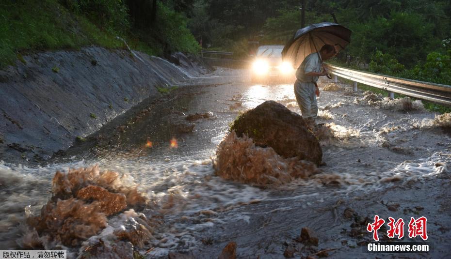 當(dāng)?shù)貢r(shí)間2017年7月5日,臺(tái)風(fēng)“南瑪都”為日本九州地區(qū)帶來強(qiáng)降雨。圖為九州島大分縣,大雨導(dǎo)致巨石滾落,交通癱瘓。