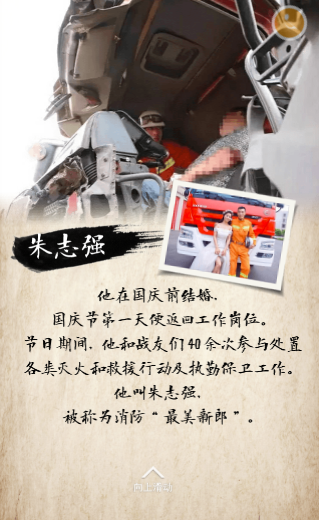 他在國慶前結(jié)婚,國慶節(jié)第一天便返回工作崗位。節(jié)日期間,他和戰(zhàn)友們40余次參與處置各類滅火和救援行動及執(zhí)勤保衛(wèi)工作。他叫朱志強,被稱為消防“最美新郎”。