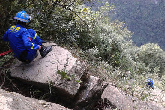 “地形實(shí)在太復(fù)雜了,不僅有懸崖峭壁,附近還有天坑?!崩ㄊ泄簿终翁幑ぷ魅藛T介紹,幾條警犬輪流搜救都累趴下。