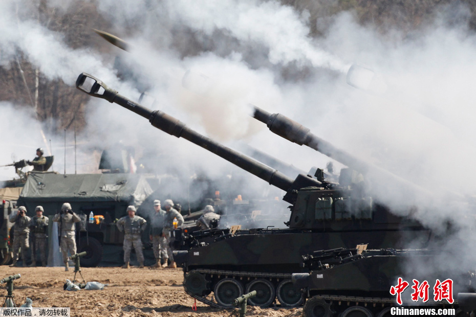 2012年3月15日,韓國京畿道抱川市,韓國和美國士兵在實彈射擊靶場共同參加代號為“禿鷲”的韓美聯(lián)合軍演。
