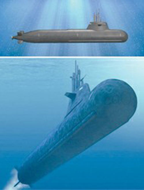該型艇長63米,寬6.4米,吃水6米,水面航行速度超過l0節(jié),以電池模式潛航時(shí)速度超過20節(jié),以AIP模式潛航時(shí)航速5節(jié),航程1000海里,水面排水量1700噸,水下排水量1900噸,艇員編制17~26人。采用X型艉舵,四個(gè)舵面均有垂直舵和水平舵的雙重功能,且每個(gè)舵面都可以獨(dú)立控制,大大提升潛艇機(jī)動(dòng)性能。