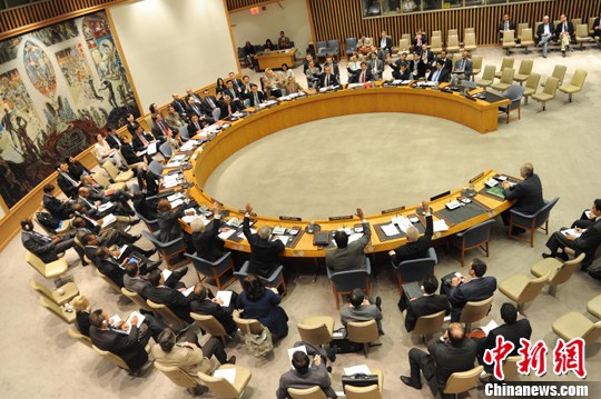 聯(lián)合國安理會(huì)21日一致通過決議,決定設(shè)立聯(lián)合國敘利亞監(jiān)督團(tuán)(聯(lián)敘監(jiān)督團(tuán)),初期部署300名非武裝軍事觀察員,最初任期為90天。中新社發(fā) 孫宇挺 攝