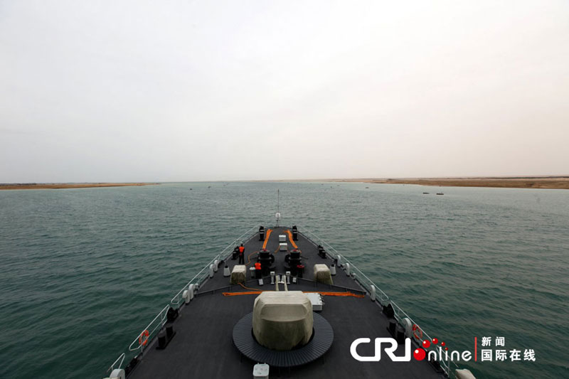 國際在線報(bào)道(記者王智達(dá)、曹金平):當(dāng)?shù)貢r(shí)間27日清晨6時(shí)(北京時(shí)間中午12時(shí)),執(zhí)行“和諧使命——鄭和艦環(huán)球行”任務(wù)的中國海軍遠(yuǎn)洋航海訓(xùn)練艦“鄭和”艦,在埃方引水員引導(dǎo)下,緩緩駛?cè)胧澜缏劽奶K伊士運(yùn)河。圖為鄭和艦駛?cè)胩K伊士運(yùn)河 王智達(dá)攝