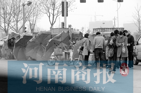 為遮擋大風(fēng),路邊小吃攤的大傘都迎風(fēng)放著。河南商報(bào)記者 鄧萬(wàn)里/攝