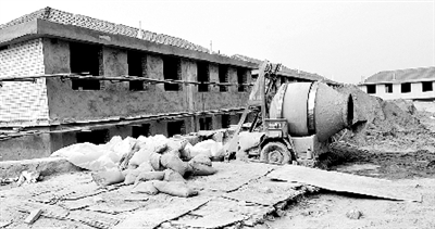 在泰山村村西邊看到大面積在建別墅已經(jīng)停工,一個農(nóng)民工說,這兒是“龍騰盛世”四期。關(guān)于停工,該農(nóng)民工說:“停幾天還會再開工的,村支書能量大著呢。”