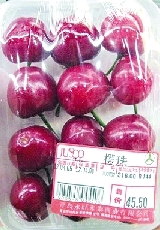 在批發(fā)市場上就能賣出120元/斤的高價,進了超市就更是“貴族身份”。在青島的香港中路一超市,用保鮮膜包裝好的櫻珠,售價高達158元/斤。隨手拿起一盒,記者看到11顆櫻珠竟然賣到了47.4元 ,平均下來一顆4.3元。