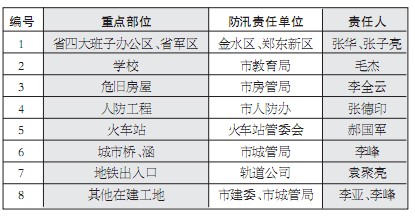 中原網訊 為全面貫徹省委常委、市委書記吳天君關于2012年度城市防汛工作“預防為主、精細管理、完善機制、確保民生”的指示精神,落實城市防汛應急預案,全面安排部署2012年度城市防汛工作,相關部門對城市區(qū)進行了排查,建立了全市重要道路、可能出現的積水區(qū)域責任人制度,明確了積水區(qū)域和收水口的管護責任人,努力把強降雨對市民生產生活的影響降到最低限度。一旦出現強降雨天氣,各管護責任人將及時到崗,疏通收水口,確保排水系統通暢,發(fā)揮目前排水基礎設施最大功效?,F將市區(qū)積水區(qū)域排查及采取措施、責任人情況,防汛重點部位責任單位及責任人情況,移動泵車防汛值守情況以及《鄭州市城市防汛應急預案》予以公布,請廣大市民進行監(jiān)督。