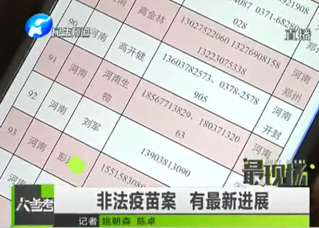 • 非法疫苗案 河南涉及24條上線
