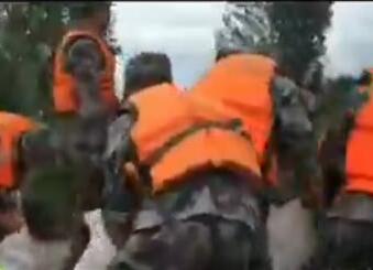 堤壩現(xiàn)潰口 戰(zhàn)士筑人墻