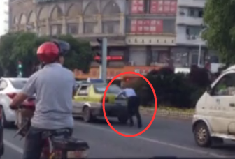 出租車拋錨執(zhí)勤協(xié)警奮力推車