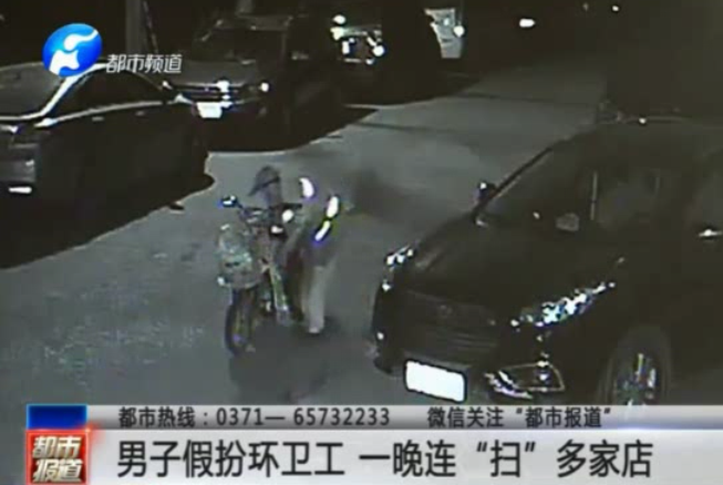 男子假扮環(huán)衛(wèi)工 一晚連“掃”多店