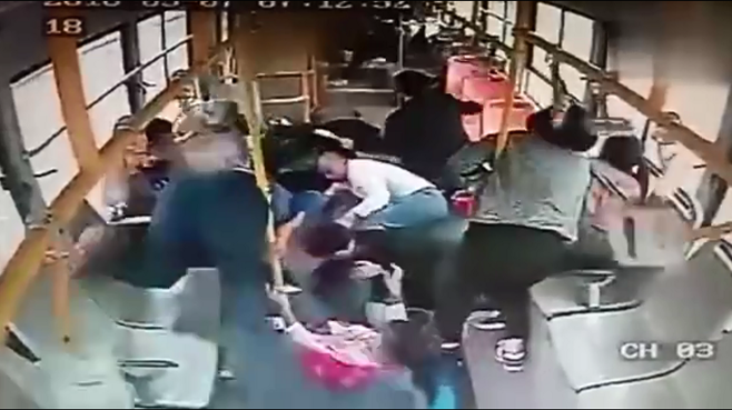 公交車(chē)未按定規(guī)停靠被追尾 車(chē)內(nèi)乘客瞬間“亂飛”