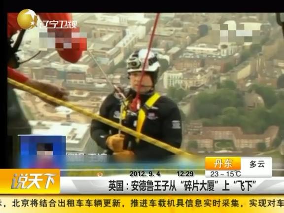 英國(guó)安德魯王子3日早晨利用繩索從歐洲最高建筑倫敦“碎片大廈”“飛下”約239米,為慈善機(jī)構(gòu)募集善款。安德魯王子是英國(guó)王位第四順位繼承人,現(xiàn)年52歲。他當(dāng)天從大廈第87層出發(fā),借助繩索下降至20層,耗時(shí)30分鐘?;顒?dòng)結(jié)束后,他說(shuō):“我永遠(yuǎn)不會(huì)再這么做了?!?