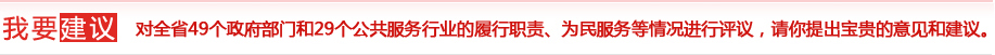 為貫徹落實(shí)黨中央、國務(wù)院關(guān)于加強(qiáng)作風(fēng)建設(shè)的指示精神和省政府關(guān)于"兩轉(zhuǎn)兩提"的要求,努力建設(shè)服務(wù)政府、責(zé)任政府、法治政府和廉潔政府,進(jìn)一步增強(qiáng)公共服務(wù)行業(yè)的服務(wù)意識,切實(shí)加強(qiáng)政風(fēng)行風(fēng)建設(shè),省政府糾風(fēng)辦繼續(xù)在全省各級政府部門和公共服務(wù)行業(yè)開展以"樹立優(yōu)良作風(fēng),構(gòu)建和諧中原"為主題的民主評議政風(fēng)行風(fēng)活動。河南省人民政府糾風(fēng)辦委托映象網(wǎng)開通網(wǎng)上評議系統(tǒng),對全省49個政府部門和29個公共服務(wù)行業(yè)的履行職責(zé)、為民服務(wù)等情況進(jìn)行評議,請你提出寶貴的意見和建議。
