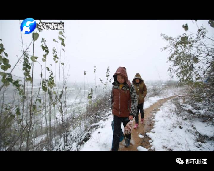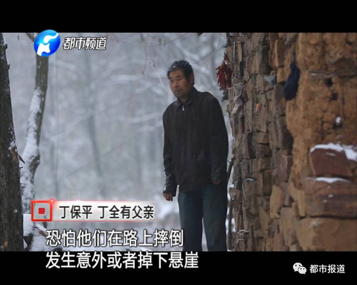放學(xué)了,姐弟倆從學(xué)校到家要走六七公里山路,這樣下雪的天氣里,他們得比平常更小心。而此時(shí)家里的爸爸丁保平,也焦急得在家門口等待孩子們回家。