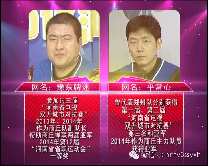 今天將要進(jìn)行的是2015河南省電視雙升精英賽下半?yún)^(qū)第2輪敗者組的第2場(chǎng)比賽,由第一輪失利的商丘精英豫東牌迷和平常心對(duì)決濟(jì)源精英布局和傲云天。