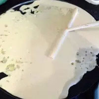 4. 煎餅鍋加熱放油,刷均勻。沒有煎餅鍋,用各種可以加熱的平底鍋也是可以的。