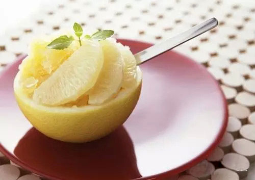 蒸食方法:鮮柚留皮去核,隔水蒸后加蜜糖食用。