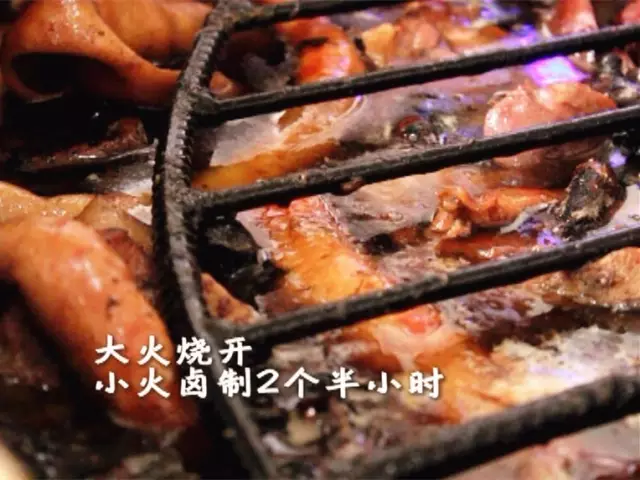 還有啥大料?這可是個(gè)秘密,據(jù)說這秘方可是他家獨(dú)有的,俗話說細(xì)節(jié)決定成敗,鹵料下鍋也要充分注意小細(xì)節(jié),肉皮朝下才能保證煮透并入味,上面還要蓋上鐵篦子和長(zhǎng)石條,保證肉類能充分浸泡在老湯中。