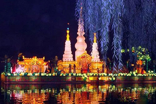漢明帝永平年間(公元58--75),因明帝提倡佛法,適逢蔡愔從印度求得佛法歸來,稱印度摩喝陀國每逢正月十五,僧眾云集瞻仰佛舍利,是參佛的吉日良辰。漢明帝為了弘揚佛法,下令正月十五夜在宮中和寺院"燃燈表佛"。此后,元宵放燈的習俗就由原來只在宮廷中舉行而流傳到民間。即每到正月十五,無論士族還是庶民都要掛燈,城鄉(xiāng)通宵燈火輝煌。