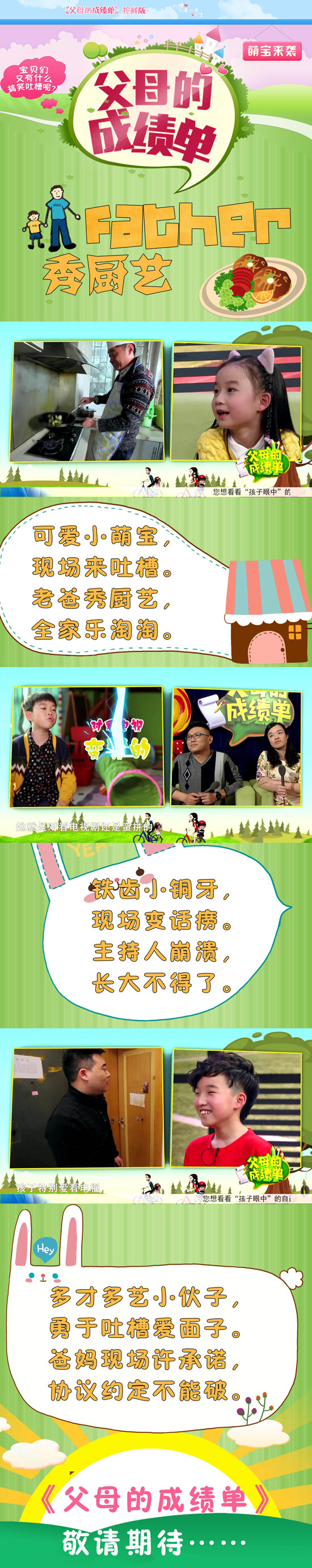《父母的成績單》河南衛(wèi)視(周一晚)21點(diǎn)15分播出!想了解這期節(jié)目中孩子們有哪些雷人吐槽嘛,想知道父母?jìng)兊木时憩F(xiàn)嗎?先來看看下面的圖文花絮感受一下吧。