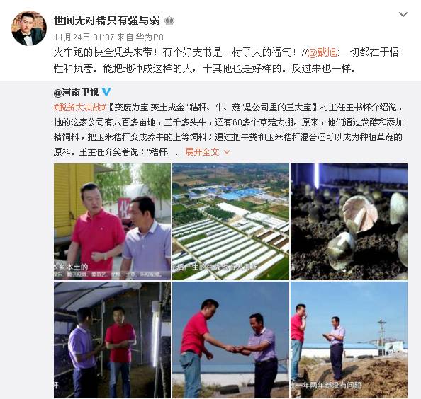 網(wǎng)友“世間無對(duì)錯(cuò)只有強(qiáng)與弱”評(píng)論說:火車跑的快,全憑頭來帶!有個(gè)好支書是一村子人的福氣!