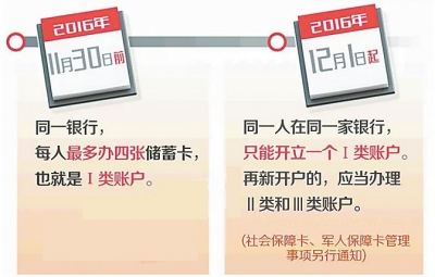核心提示|央行關于個人銀行賬戶實行分類管理的新政將于12月1日正式實施。根據(jù)新政要求,個人銀行賬戶將分為Ⅰ類、Ⅱ類、Ⅲ類賬戶,不同類別的賬戶有不同的功能和權限。個人在銀行開立賬戶,每人在同一家銀行,只能開立一個Ⅰ類戶,如果已經(jīng)有Ⅰ類戶的,再開戶時只能是Ⅱ、Ⅲ類賬戶。央行表示,通過對個人銀行賬戶進行分類管理,規(guī)避金融詐騙風險。