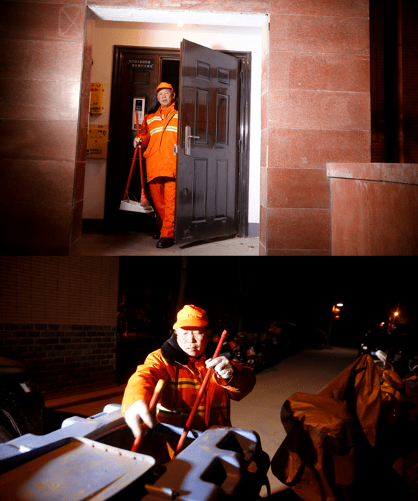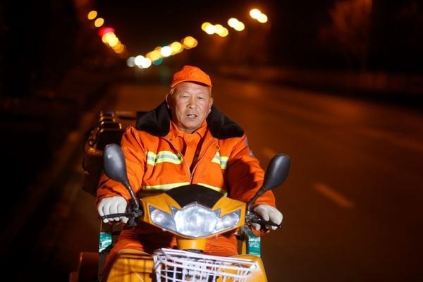 2017年1月12日,04:30,此時室外溫度-2℃ 。62歲的環(huán)衛(wèi)工人唐師傅穿著黃色環(huán)衛(wèi)工作服,帶上清掃工具,騎上電瓶車,準(zhǔn)備出門,開始一天的工作。